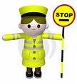 Por questões de segurança a pessoa que desempenha essa função deve estar uniformizada adequadamente (com roupas fluorescentes) e com o Lolipop (a placa escrita stop) na mão.